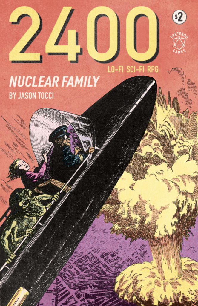 Visit this planet in another 2400 game. If you want to situate Nuclear Family in a larger 2400 setting, this doesn’t have to be Earth. It could well be some other world — an extrasolar colony founded by jingoistic American “pioneers,” once riding high on the cloying boosterism of their successes, giving way to barely suppressed anxiety over the real (and eventual) threat of nuclear and biological warfare. It might be…